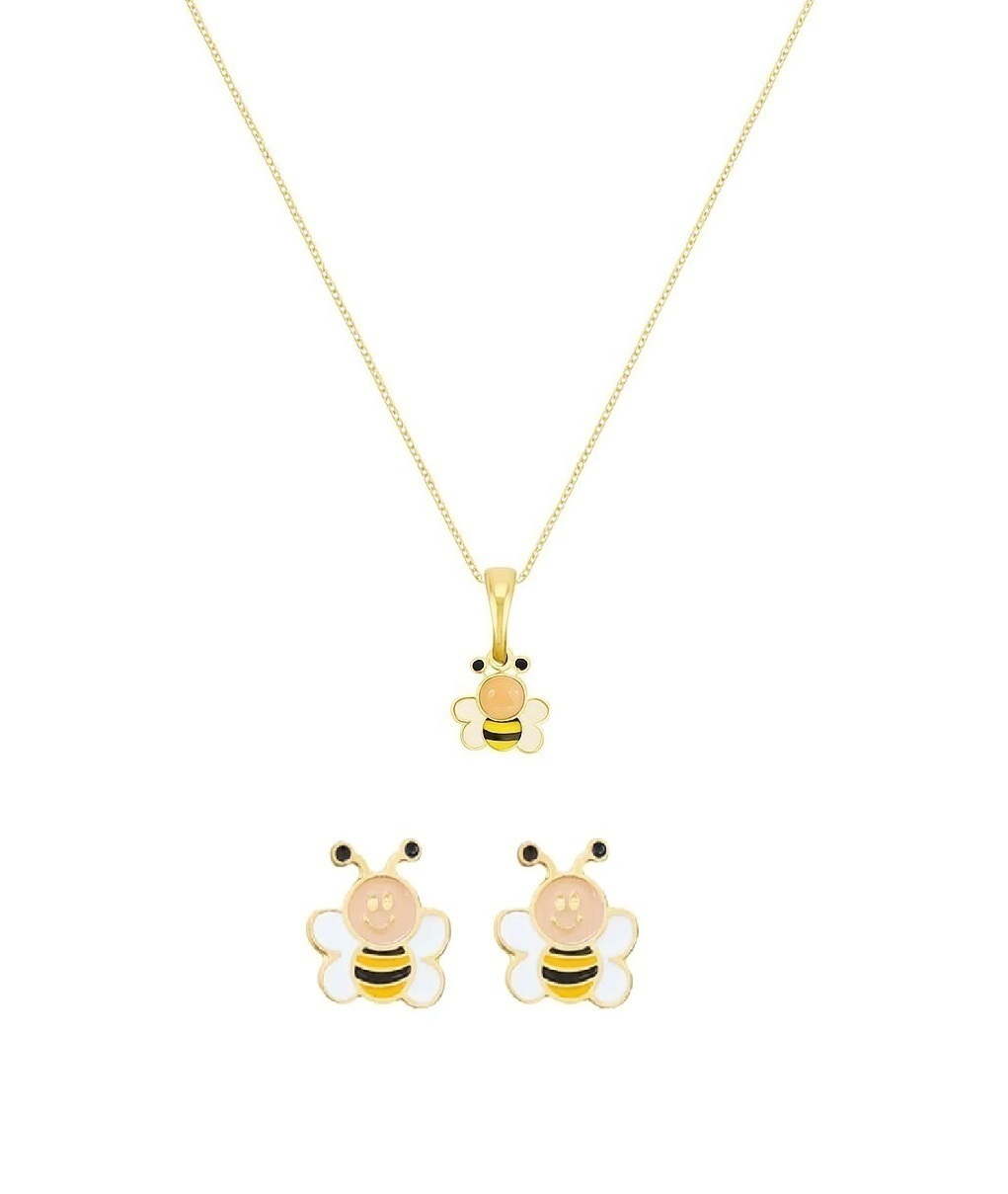 O Conjunto Infantil Abelhinha Resinada é cheio de fofura e significado, perfeito para acompanhar as pequenas com segurança e muito charme!